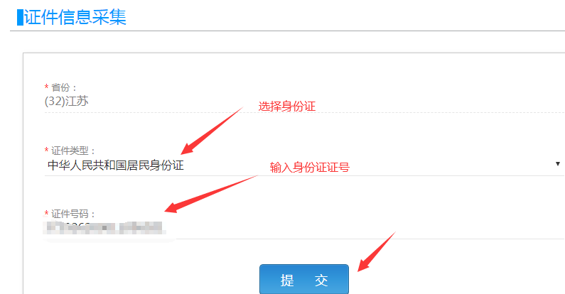 1、 如已注册,输入证件号、密码及验证码,点击“登录”: