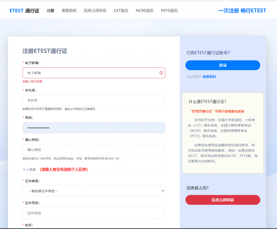 2、每位考生当次只能参加一种级别的考试,且必须学习过的学生才能参加考试报名。